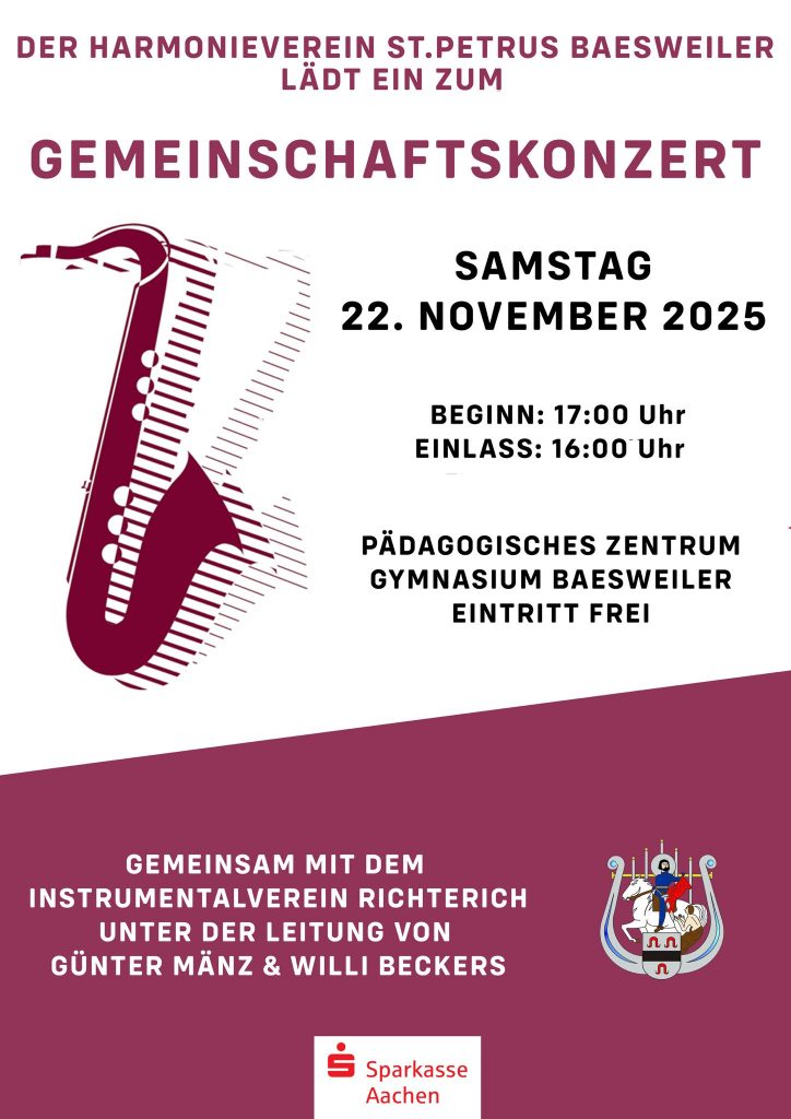 Gemeinschaftskonzert Harmonieverein St. Petrus Baesweiler und Instrumentalverein Richterich